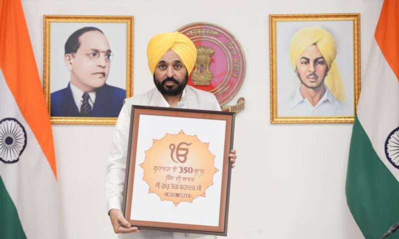 ਪੰਜਾਬ ਦੇ ਮੁੱਖ ਮੰਤਰੀ ਭਗਵੰਤ ਸਿੰਘ ਮਾਨ ਨੇ ਅੱਜ ਸ੍ਰੀ ਗੁਰੂ ਤੇਗ ਬਹਾਦਰ ਜੀ ਦੇ 350ਵੇਂ ਸ਼ਹੀਦੀ ਦਿਹਾੜੇ ਨੂੰ ਸਮਰਪਿਤ ਕਰਵਾਏ ਜਾਣ ਵਾਲੇ ਰਾਜ ਪੱਧਰੀ ਯਾਦਗਾਰੀ ਸਮਾਗਮਾਂ ਲਈ ਲੋਗੋ ਜਾਰੀ ਕੀਤਾ।