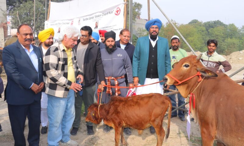 ਅੰਮ੍ਰਿਤਸਰ,27 ਦਸੰਬਰ ()- ਅੱਜ ਅਜਨਾਲਾ ਖੇਤਰ ‘ਚ ਭਿਅੰਕਰ ਹੜ੍ਹਾਂ ਦੌਰਾਨ ਪਸ਼ੂ ਧਨ ਦੇ ਨੁਕਸਾਨ ਤੋਂ ਪ੍ਰਭਾਵਿਤ ਕਿਸਾਨਾਂ/ਪਸ਼ੂ ਪਾਲਕਾਂ ਨੂੰ ਰਾਹਤ ਦੇਣ ਲਈ ਡਿਪਟੀ ਕਮਿਸ਼ਨਰ ਸ੍ਰੀ ਦਲਵਿੰਦਰਜੀਤ ਸਿੰਘ ਦੀ ਅਗਵਾਈ ਹੇਠ ਜ਼ਿਲਾ ਪ੍ਰਸ਼ਾਸ਼ਨ ਨੇ ਮਿਸ਼ਨ ਚੜ੍ਹਦੀ ਕਲਾ ਅਤੇ ਮਿਸ਼ਨ ਸਾਂਝਾ ਉਪਰਾਲਾ ਤਹਿਤ ਕੰਮ ਕਰਦੇ ਹੋਏ ਸ੍ਰੀ ਰਾਕੇਸ਼ ਹਾਂਡਾ ਦੀ ਮਦਦ ਨਾਲ 23 ਹੋਰ ਪਸ਼ੂ ਪਾਲਕਾਂ, ਜਿਨ੍ਹਾਂ ਦੇ ਪਸ਼ੂ ਹੜਾਂ ਦੀ ਭੇਟ ਚੜ ਗਏ ਸਨ, ਨੂੰ ਸਾਹੀਵਾਲ ਗਾਵਾਂ ਮੁਹੱਈਆ ਕਰਵਾਈਆਂ। ਦੱਸਣ ਯੋਗ ਹੈ ਕਿ ਇਸ ਤੋਂ ਪਹਿਲਾਂ ਵੀ 16 ਪਰਿਵਾਰਾਂ ਨੂੰ ਗਾਵਾਂ ਉਕਤ ਸ਼ਖਸ਼ੀਅਤਾਂ ਵੱਲੋਂ ਦਿੱਤੀਆਂ ਜਾ ਚੁੱਕੀਆਂ ਹਨ