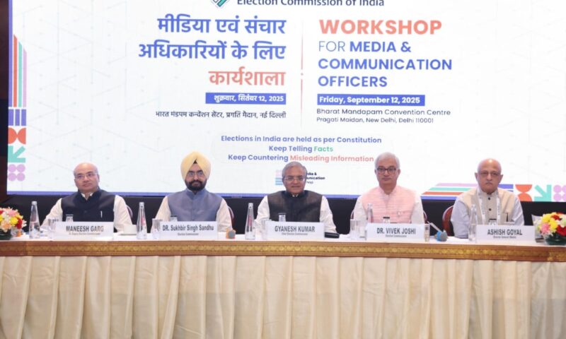 ਭਾਰਤ ਦੇ ਚੋਣ ਕਮਿਸ਼ਨ ਵੱਲੋਂ ਸ਼ੁੱਕਰਵਾਰ ਨੂੰ ਨਵੀਂ ਦਿੱਲੀ ਦੇ ਭਾਰਤ ਮੰਡਪਮ ਵਿਖੇ ਸਾਰੇ 36 ਰਾਜਾਂ ਅਤੇ ਕੇਂਦਰ ਸ਼ਾਸਤ ਪ੍ਰਦੇਸ਼ਾਂ ਦੇ ਮੁੱਖ ਚੋਣ ਅਧਿਕਾਰੀ( ਸੀਈਓ) ਦਫ਼ਤਰਾਂ ਦੇ ਮੀਡੀਆ ਅਤੇ ਸੰਚਾਰ ਅਫ਼ਸਰਾਂ ਲਈ ਇੱਕ ਰੋਜ਼ਾ ਵਰਕਸ਼ਾਪ ਦਾ ਪ੍ਰਬੰਧ ਕੀਤਾ ਗਿਆ।
