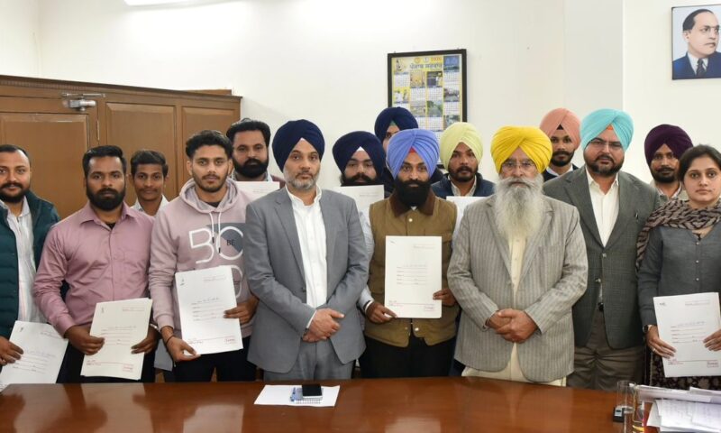 ਸੂਬੇ ਦੇ ਖੇਤੀਬਾੜੀ ਬੁਨਿਆਦੀ ਢਾਂਚੇ ਅਤੇ ਜ਼ਮੀਨੀ ਪੱਧਰ ‘ਤੇ ਸੇਵਾਵਾਂ ਦੇ ਵਿਸਥਾਰ ਨੂੰ ਹੋਰ ਮਜ਼ਬੂਤ ਕਰਨ ਦੀ ਦਿਸ਼ਾ ਵਿੱਚ ਮਹੱਤਵਪੂਰਨ ਕਦਮ ਚੁੱਕਦਿਆਂ ਪੰਜਾਬ ਦੇ ਖੇਤੀਬਾੜੀ ਅਤੇ ਕਿਸਾਨ ਭਲਾਈ ਮੰਤਰੀ ਸ. ਗੁਰਮੀਤ ਸਿੰਘ ਖੁੱਡੀਆਂ ਨੇ ਅੱਜ ਇੱਥੇ ਆਪਣੇ ਦਫ਼ਤਰ ਵਿਖੇ 13 ਨਵ-ਨਿਯੁਕਤ ਖੇਤੀਬਾੜੀ ਸਬ-ਇੰਸਪੈਕਟਰਾਂ (ਏ.ਐਸ.ਆਈਜ਼) ਨੂੰ ਨਿਯੁਕਤੀ ਪੱਤਰ ਸੌਂਪੇ।