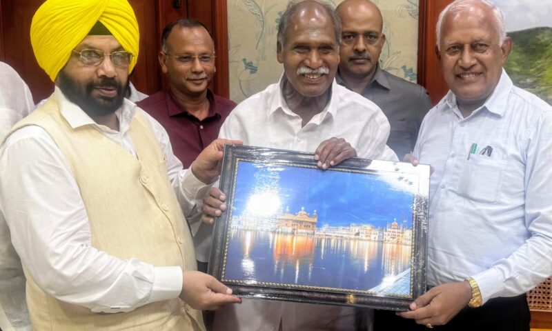 ਨੌਵੇਂ ਪਾਤਿਸ਼ਾਹ ਸ੍ਰੀ ਗੁਰੂ ਤੇਗ਼ ਬਹਾਦਰ ਸਾਹਿਬ ਜੀ ਦੇ 350ਵੇਂ ਸ਼ਹੀਦੀ ਦਿਵਸ ਲਈ ਦੇਸ਼ ਭਰ ਦੇ ਮੁੱਖ ਮੰਤਰੀਆਂ ਨੂੰ ਸੱਦਾ ਦੇਣ ਦੀ ਮੁੱਖ ਮੰਤਰੀ ਭਗਵੰਤ ਸਿੰਘ ਮਾਨ ਦੀ ਪਹਿਲ ਤਹਿਤ ਲੋਕ ਨਿਰਮਾਣ ਮੰਤਰੀ ਹਰਭਜਨ ਸਿੰਘ ਈਟੀਓ ਅਤੇ ਜਲ ਸਰੋਤ ਮੰਤਰੀ ਬਰਿੰਦਰ ਕੁਮਾਰ ਗੋਇਲ ਨੇ ਅੱਜ ਪੁਡੂਚੇਰੀ ਦੇ ਮੁੱਖ ਮੰਤਰੀ ਐਨ. ਰੰਗਾਸਾਮੀ ਨਾਲ ਮੁਲਾਕਾਤ ਕਰਕੇ ਉਨ੍ਹਾਂ ਨੂੰ ਅਗਲੇ ਮਹੀਨੇ ਸ੍ਰੀ ਅਨੰਦਪੁਰ ਸਾਹਿਬ ਵਿਖੇ ਹੋਣ ਵਾਲੇ ਮੁੱਖ ਸਮਾਗਮਾਂ ਵਿੱਚ ਸ਼ਾਮਲ ਹੋਣ ਲਈ ਰਸਮੀ ਸੱਦਾ ਦਿੱਤਾ।