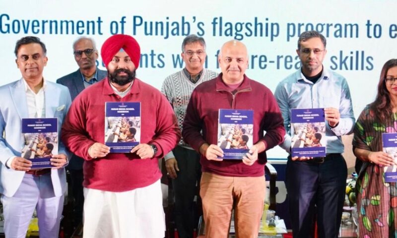 ਪੰਜਾਬ ਦੇ ਸਿੱਖਿਆ ਮੰਤਰੀ ਸ. ਹਰਜੋਤ ਸਿੰਘ ਬੈਂਸ ਅਤੇ ‘ਆਪ’ ਪੰਜਾਬ ਦੇ ਇੰਚਾਰਜ ਸ੍ਰੀ ਮਨੀਸ਼ ਸਿਸੋਦੀਆ ਵੱਲੋਂ ਅੱਜ ‘ਹੁਨਰ ਸਿੱਖਿਆ ਸਕੂਲ’ ਹੈਂਡਬੁੱਕ ਲਾਂਚ ਕੀਤੀ ਗਈ। ਇਸ ਮੌਕੇ ਉਨ੍ਹਾਂ ਨੇ ਅਕਾਦਮਿਕ ਸਾਲ 2025-26 ਲਈ 40 ਸਕੂਲਾਂ ਵਿੱਚ ਸ਼ੁਰੂ ਕੀਤੇ ਗਏ “ਹੁਨਰ ਸਿੱਖਿਆ ਸਕੂਲ” ਪ੍ਰੋਗਰਾਮ, ਜਿਸਦਾ ਉਦੇਸ਼ ਗਿਆਰ੍ਹਵੀਂ ਅਤੇ ਬਾਰ੍ਹਵੀਂ ਜਮਾਤ ਦੇ ਵਿਦਿਆਰਥੀਆਂ ਨੂੰ ਨਵੇਂ ਯੁੱਗ ਦੀਆਂ ਲੋੜਾਂ ਅਨੁਸਾਰ ਅਤਿ-ਆਧੁਨਿਕ ਹੁਨਰਾਂ ਨਾਲ ਲੈੱਸ ਕਰਨਾ ਹੈ, ਵਾਸਤੇ ਉਦਯੋਗ-ਕੇਂਦ੍ਰਿਤ ਪਾਠਕ੍ਰਮ ਤਿਆਰ ਕਰਨ ਵਿੱਚ ਸਹਿਯੋਗ ਦੇਣ ਵਾਲੇ ਅਧਿਆਪਕਾਂ, ਵਿਸ਼ਾ ਮਾਹਿਰਾਂ ਅਤੇ ਤਕਨੀਕੀ ਭਾਈਵਾਲਾਂ ਦਾ ਸਨਮਾਨ ਵੀ ਕੀਤਾ ਗਿਆ।