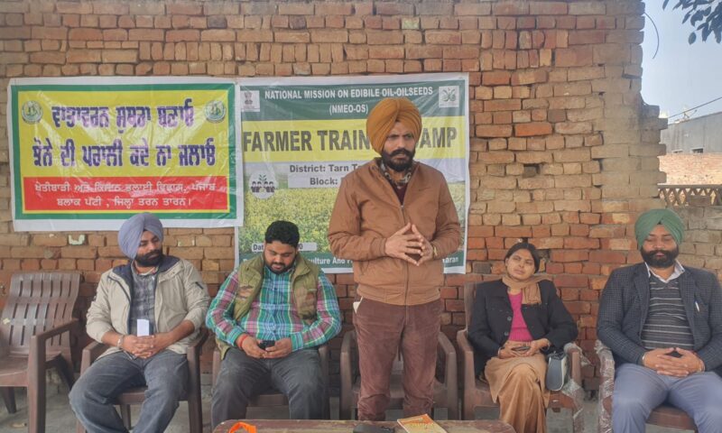 ਪੱਟੀ/ਤਰਨ ਤਾਰਨ, 23 ਜਨਵਰੀ (         ) – ਡਿਪਟੀ ਕਮਿਸ਼ਨਰ ਤਰਨ ਤਰਨ ਸ੍ਰੀ ਰਾਹੁਲ ਆਈ.ਏ.ਐੱਸ. ਅਤੇ ਮੁੱਖ ਖੇਤੀਬਾੜੀ ਅਫ਼ਸਰ ਤਰਨ ਤਰਨ ਡਾ. ਤੇਜਬੀਰ ਸਿੰਘ ਦੇ ਦਿਸ਼ਾ ਨਿਰਦੇਸ਼ ਹੇਠ ਨੈਸ਼ਨਲ ਮਿਸ਼ਨ ਆਫ ਐਡੀਬਲ ਆਇਲ ਸਕੀਮ ਅਧੀਨ ਪੱਟੀ ਅਤੇ ਪਿੰਡ ਘਰਿਆਲਾ ਵਿਖੇ ਦੋ ਰੋਜ਼ਾ ਕਿਸਾਨ ਸਿਖਲਾਈ ਕੈਂਪ ਦਾ ਆਯੋਜਨ ਕੀਤਾ ਗਿਆ।