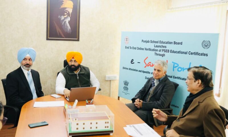 ਅੱਜ ਇੱਥੇ ਪੰਜਾਬ ਸਕੂਲ ਸਿੱਖਿਆ ਬੋਰਡ ਦੀ “ਈ-ਸਨਦ” ਸੇਵਾ ਦੀ ਸ਼ੁਰੂਆਤ ਨਾਲ ਬੋਰਡ ਦੇ ਮੌਜੂਦਾ ਤੇ ਸਾਬਕਾ ਵਿਦਿਆਰਥੀ ਵਿਸਥਾਰਤ ਅੰਕ-ਸੂਚੀ (ਡੀ.ਐਮ.ਸੀ) ਅਤੇ ਸਰਟੀਫਿਕੇਟਾਂ ਦੀ ਆਨਲਾਈਨ ਤਸਦੀਕ ਹੁਣ ਕੁੱਝ ਹੀ ਦਿਨਾਂ ਵਿੱਚ ਕਰਵਾ ਸਕਦੇ ਹਨ, ਜਿਸ ਲਈ ਪਹਿਲਾਂ 40-45 ਦਿਨ ਲੱਗਦੇ ਸਨ। ਸਰਕਾਰ ਮੁਤਾਬਕ ਇਸ ਕਦਮ ਨਾਲ ਪੰਜਾਬ ਸਕੂਲ ਬੋਰਡ ਤੋਂ ਹਰ ਸਾਲ ਪਾਸ ਹੋਣ ਵਾਲੇ ਹਜ਼ਾਰਾਂ ਵਿਦਿਆਰਥੀਆਂ ਨੂੰ ਲਾਭ ਮਿਲੇਗਾ ਅਤੇ ਬੋਰਡ ਵੱਲੋਂ ਜਾਰੀ ਕੀਤੇ ਜਾਣ ਵਾਲੇ ਸਰਟੀਫਿਕੇਟਾਂ ਦੀ ਭਰੋਸੇਯੋਗਤਾ ਵਧੇਗੀ ਅਤੇ ਉਚੇਰੀ ਸਿੱਖਿਆ, ਰੋਜ਼ਗਾਰ ਅਤੇ ਵਿਦੇਸ਼ ਵਾਸਤੇ ਤੇਜ਼ੀ ਨਾਲ ਤਸਦੀਕ ਯਕੀਨੀ ਬਣੇਗੀ।