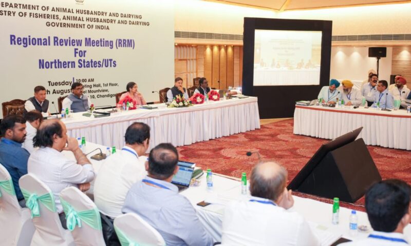 ਭਾਰਤ ਸਰਕਾਰ ਦੇ ਪਸ਼ੂ ਪਾਲਣ ਤੇ ਡੇਅਰੀ ਵਿਭਾਗ ਦੇ ਵਧੀਕ ਸਕੱਤਰ ਸ਼੍ਰੀਮਤੀ ਵਰਸ਼ਾ ਜੋਸ਼ੀ ਦੀ ਪ੍ਰਧਾਨਗੀ ਹੇਠ ਹੋਈ ਉੱਤਰੀ ਰਾਜਾਂ ਅਤੇ ਕੇਂਦਰ ਸ਼ਾਸਤ ਪ੍ਰਦੇਸ਼ਾਂ ਦੀ ਖੇਤਰੀ ਸਮੀਖਿਆ ਮੀਟਿੰਗ (ਆਰ.ਆਰ.ਐਮ.), ਜਿਸ ਦੀ ਮੇਜ਼ਬਾਨੀ ਪੰਜਾਬ ਸਰਕਾਰ ਨੇ ਕੀਤੀ, ਦੌਰਾਨ ਪੰਜਾਬ ਦੇ ਪਸ਼ੂ ਪਾਲਣ ਵਿਭਾਗ ਨੂੰ ਇਹ ਪ੍ਰਸ਼ੰਸਾ ਹਾਸਲ ਹੋਈ। ਮੀਟਿੰਗ ਵਿੱਚ ਪਸ਼ੂਧਨ ਸਿਹਤ ਰੋਗ ਨਿਯੰਤਰਣ ਪ੍ਰੋਗਰਾਮ ਅਤੇ ਰਾਸ਼ਟਰੀ ਪਸ਼ੂਧਨ ਮਿਸ਼ਨ ਦੀ ਪ੍ਰਗਤੀ ਦੀ ਸਮੀਖਿਆ ਕੀਤੀ ਗਈ। ਇਸ ਮੀਟਿੰਗ ਵਿੱਚ ਅੱਠ ਉੱਤਰੀ ਰਾਜਾਂ ਅਤੇ ਕੇਂਦਰ ਸ਼ਾਸਤ ਪ੍ਰਦੇਸ਼ਾਂ, ਜਿਨ੍ਹਾਂ ਵਿੱਚ ਉੱਤਰ ਪ੍ਰਦੇਸ਼, ਹਿਮਾਚਲ ਪ੍ਰਦੇਸ਼, ਜੰਮੂ ਅਤੇ ਕਸ਼ਮੀਰ, ਉਤਰਾਖੰਡ, ਹਰਿਆਣਾ, ਲੱਦਾਖ, ਚੰਡੀਗੜ੍ਹ ਅਤੇ ਪੰਜਾਬ ਸ਼ਾਮਲ ਸਨ, ਦੇ ਅਧਿਕਾਰੀ ਇਕੱਤਰ ਹੋਏ। ਇਸ ਮੀਟਿੰਗ ਦੌਰਾਨ ਪ੍ਰਵਾਨਿਤ ਸਾਲਾਨਾ ਕਾਰਜ ਯੋਜਨਾਵਾਂ ਅਨੁਸਾਰ ਸਾਲ 2024-25 ਲਈ ਪਸ਼ੂਧਨ ਸਿਹਤ ਅਤੇ ਵਿਕਾਸ ਯੋਜਨਾਵਾਂ ਦੀ ਪ੍ਰਗਤੀ ਦੀ ਸਮੀਖਿਆ ਦੇ ਨਾਲ-ਨਾਲ ਸਾਲ 2025-26 ਲਈ ਯੋਜਨਾਵਾਂ ਤਿਆਰ ਕਰਨ ਬਾਰੇ ਵਿਚਾਰ-ਵਟਾਂਦਰਾ ਵੀ ਕੀਤਾ ਗਿਆ।