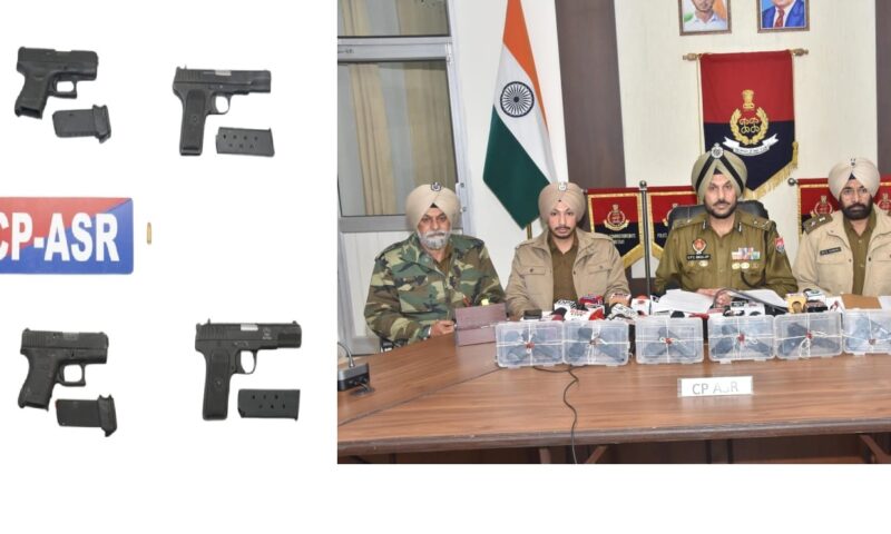 ਮੁੱਖ ਮੰਤਰੀ ਭਗਵੰਤ ਸਿੰਘ ਮਾਨ ਦੇ ਦਿਸ਼ਾ-ਨਿਰਦੇਸ਼ਾਂ ਅਨੁਸਾਰ ਪੰਜਾਬ ਨੂੰ ਸੁਰੱਖਿਅਤ ਸੂਬਾ ਬਣਾਉਣ ਲਈ ਚੱਲ ਰਹੀ ਮੁਹਿੰਮ ਦੌਰਾਨ ਇੱਕ ਵੱਡੀ ਸਫਲਤਾ ਵਿੱਚ ਅੰਮ੍ਰਿਤਸਰ ਕਮਿਸ਼ਨਰੇਟ ਪੁਲਿਸ ਨੇ ਦੋ ਸੰਚਾਲਕਾਂ ਨੂੰ ਗ੍ਰਿਫ਼ਤਾਰ ਕਰਕੇ ਪਾਕਿਸਤਾਨ ਅਧਾਰਕ ਤਸਕਰਾਂ ਨਾਲ ਜੁੜੇ ਸਰਹੱਦ ਪਾਰੋਂ ਚਲਾਏ ਜਾ ਰਹੇ ਗੈਰ-ਕਾਨੂੰਨੀ ਹਥਿਆਰਾਂ ਦੇ ਮਾਡਿਊਲ ਦਾ ਪਰਦਾਫਾਸ਼ ਕੀਤਾ ਹੈ ਅਤੇ ਉਨ੍ਹਾਂ ਦੇ ਕਬਜ਼ੇ ਵਿੱਚੋਂ ਛੇ ਆਧੁਨਿਕ ਪਿਸਤੌਲ ਬਰਾਮਦ ਕੀਤੇ ਹਨ। ਇਹ ਜਾਣਕਾਰੀ ਅੱਜ ਇੱਥੇ ਡਾਇਰੈਕਟਰ ਜਨਰਲ ਆਫ਼ ਪੁਲਿਸ (ਡੀਜੀਪੀ) ਪੰਜਾਬ ਗੌਰਵ ਯਾਦਵ ਨੇ ਦਿੱਤੀ।